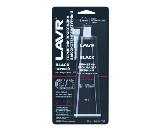 LAVR представляет самый мощный герметик-прокладку для тяжелонагруженных примыкающих узлов и соединений двигателей, КПП. Герметик-прокладка черный высокотемпературный от LAVR полимеризуется за 15 минут и может заменять резиновые, бумажные, металлические прокладки, уплотнители и сальники. Быстрый и сильный состав имеет диапазон рабочих температур от -62°С до +399°С и подходит для герметизации самых важных узлов. Он не содержит кислот и растворителей, что обеспечивает применение в электрических соединениях и датчиках.