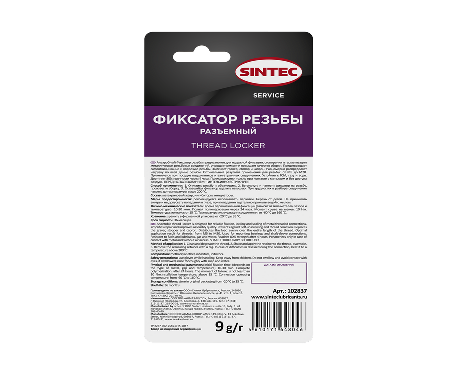 Фиксатор резьбы разъемный Tread Locker 9гр