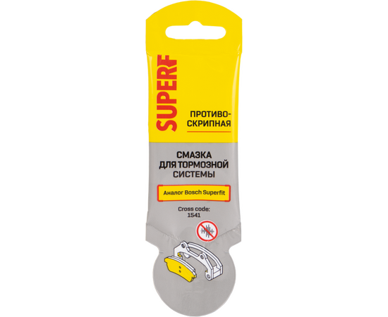 SUPER F — смазка на минеральной основе, загущенной бентонитом. Противоскрипная, высокотемпературная, антикоррозионная, без порошковых наполнителей. Предназначена для нерабочих поверхностей тормозных колодок и посадочных мест. Не совместима с резиновыми деталями.