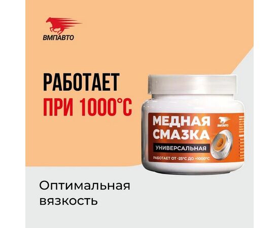 Универсальная высокотемпературная медная смазка применяется для узлов и деталей, эксплуатируемых в экстремальных условиях высокой температуры, агрессивной среды, повышенной влажности. Предотвращает заедание резьбовых соединений, сваривание и прикипание деталей, препятствует коррозии и проникновению влаги.