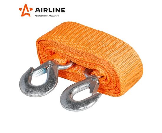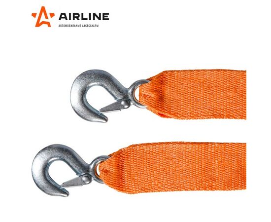 Буксировочный трос ленточного типа от компании AIRLINE изготовлен из полипропиленовых нитей с повышенным уровнем прочности. Трос оснащен крюками из металла, а также особым механизмом, фиксирующим крепление изделия. Ширина ленты равна 50 мм, а длина составляет 4 метра.