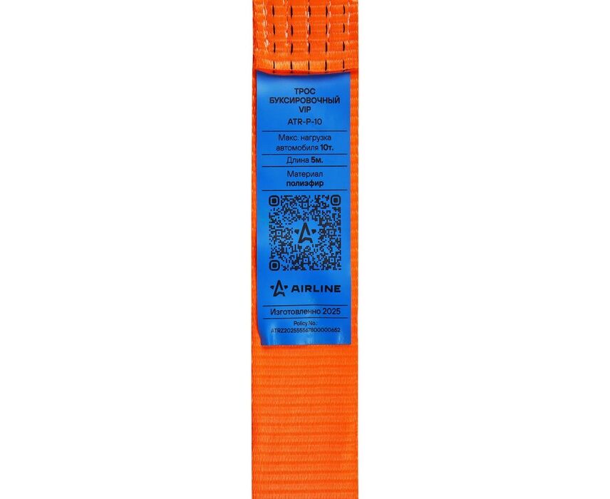 Буксировочный трос от AIRLINE имеет форму ленты, изготовленной из полиэфирного волокна. Трос поможет безопасно транспортировать автомобили или другую технику на необходимые расстояния. Грузоподъемность ленточного троса равна 10 тоннам, а длина составляет 5 метров. Для удобной транспортировки изделия предусмотрена компактная сумка.