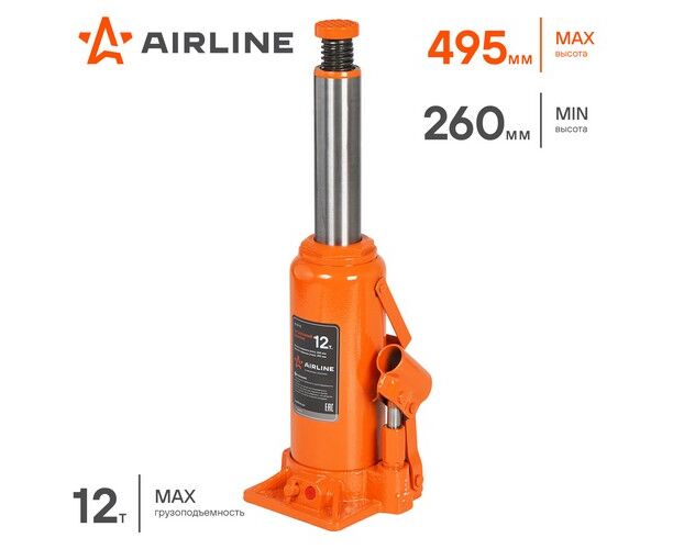 Домкрат бутылочный 12т PRO (MIN - 260мм, MAX - 495мм)