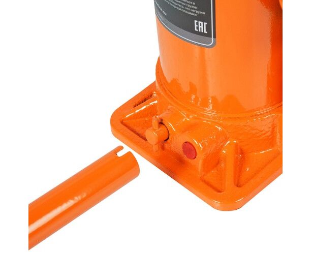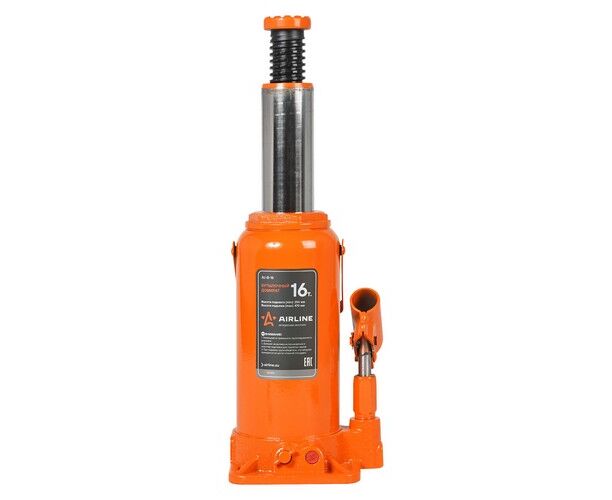 Домкрат бутылочного типа завоевал популярность благодаря своей простоте в эксплуатации и качественными показателями в период использования. Домкрат изготовлен на основе гидравлического механизма, а также для обеспечения безопасности оснащен предохранительным клапаном. Для безопасного использования и предотвращения поломок нагрузка на домкрат не должна превышать норму в 16 тонн.