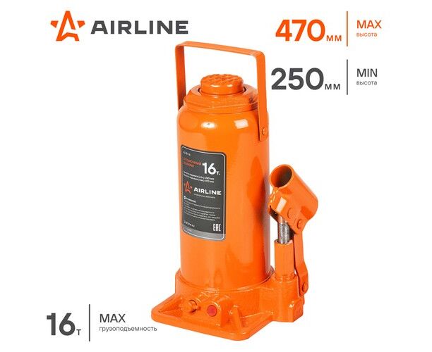 Домкрат бутылочный 16т PRO (MIN - 250мм, MAX - 470мм)