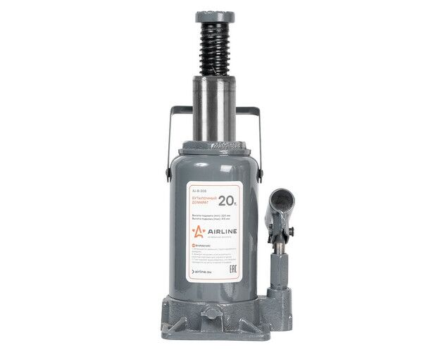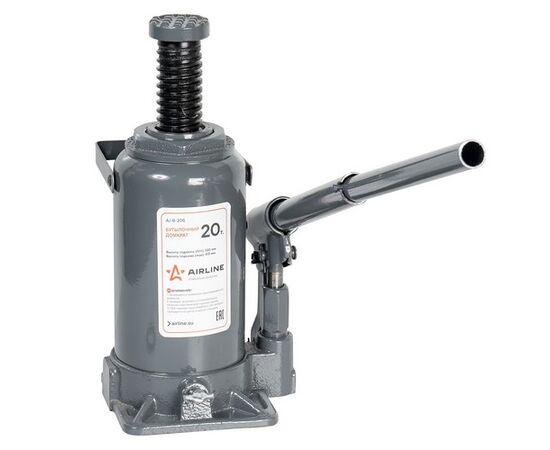 Данная модель бутылочного гидравлического домкрата разработана по принципу функционирования механизмов американского стандарта. Изделие имеет более массивный корпус, изготовленный из метала, и серую расцвету. Максимальная грузоподъемность домкрата составляет 20 тонн. Гарантия — 1 год.