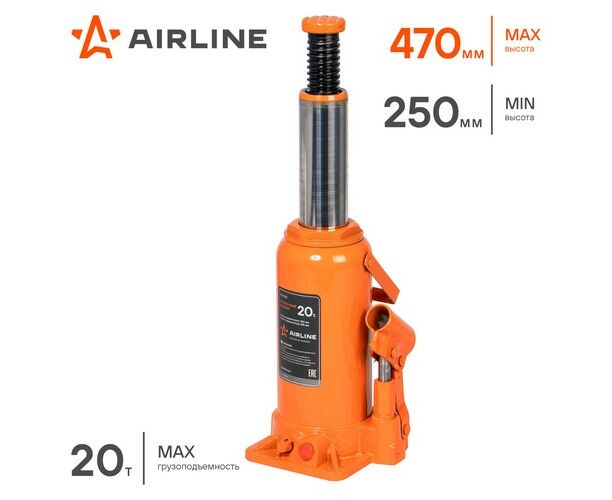 Домкрат бутылочный 20т PRO (MIN - 250мм, MAX - 470мм)