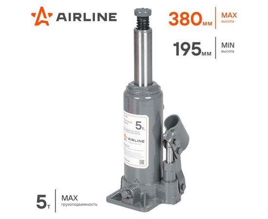 Домкрат бутылочный 5т (MIN - 195мм, MAX - 380мм) (AJ-B-05S)