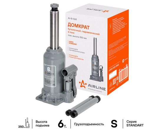 Домкрат бутылочный 6т (MIN - 180мм, MAX - 350мм) (AJ-B-06S)