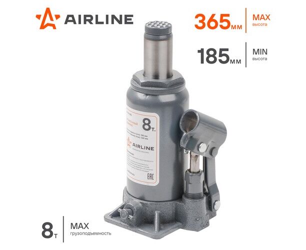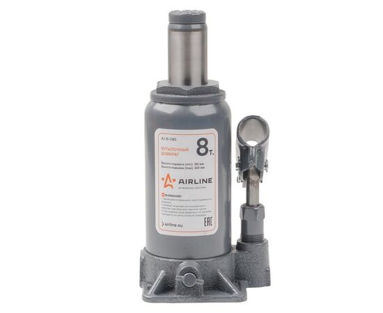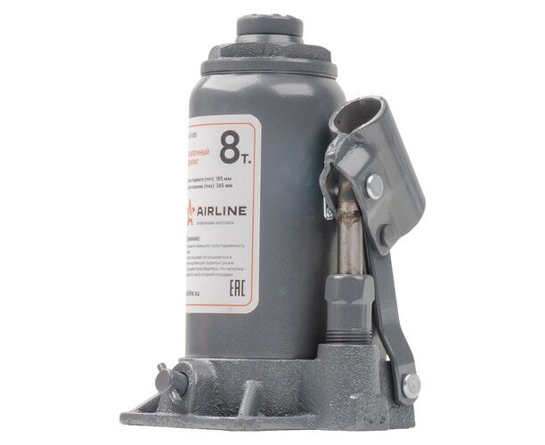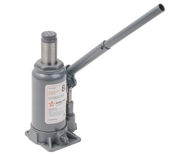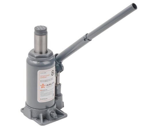В основу бутылочного домкрата данной модели положен гидравлический механизм функционирования. Основной характеристикой является грузоподъемность в 8 тонн, которая подходит как для ремонта легковых, так и крупногабаритных машин. Домкрат данной модели изготовлен в полном соответствии американским стандартам качества. Домкрат выполнен в темно-сером цвете с нанесением на поверхность изделия фирменной маркировки AIRLINE. Гарантия — 1 год.