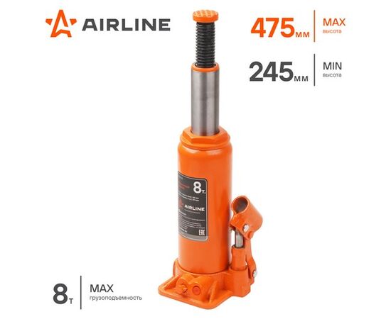 Домкрат бутылочный 8т PRO (MIN-245мм, MAX-475мм)
