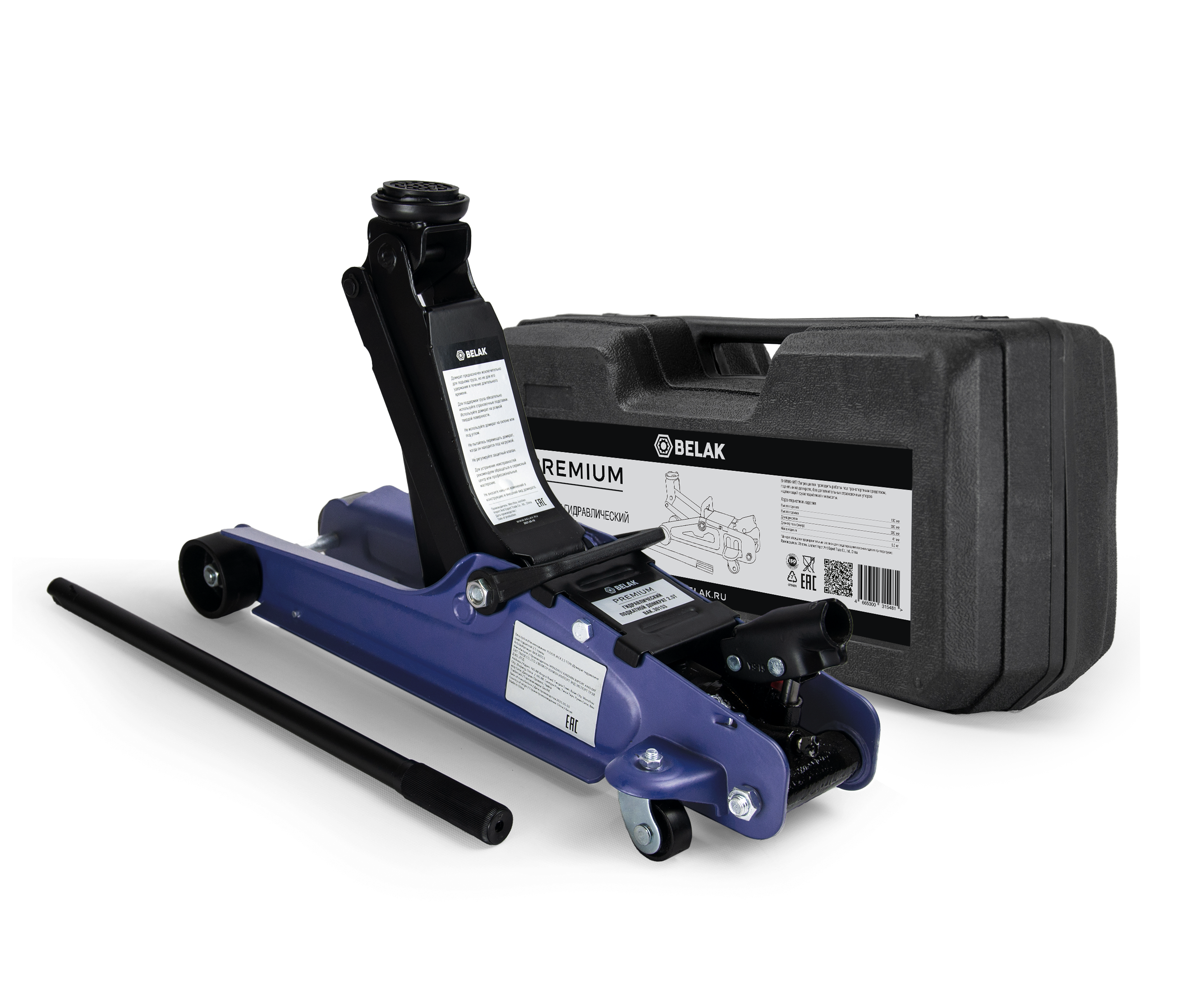 Домкрат гидравлический подкатной 2,5т. низкопрофильный в кейсе Premium Belak