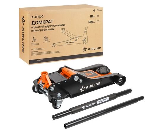 Домкрат подкатной 4т INDUSTRY двухпоршневой низкопрофильный (MIN - 112мм, MAX - 505мм) (AJ4FI500)