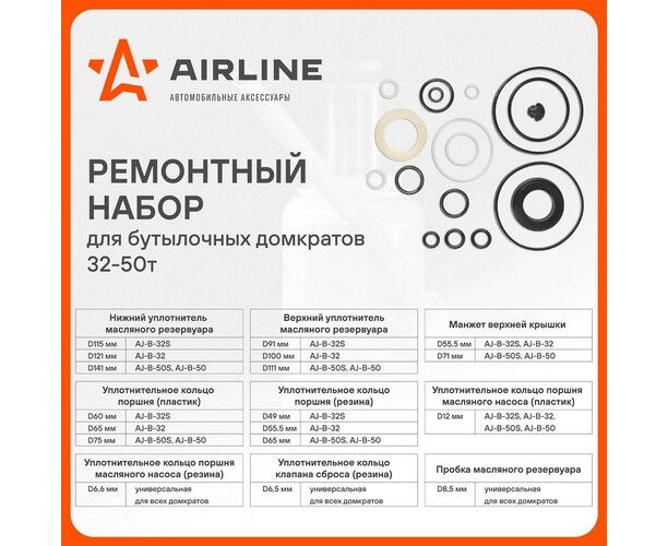 Комплект ремонтный для бутылочных домкратов универсальный (32-50т) (AJB003)