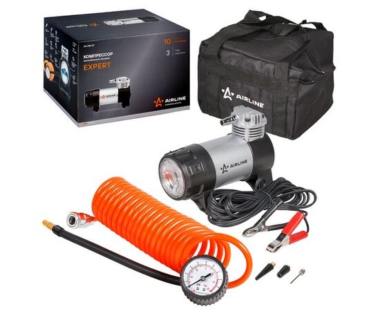 Корпус компрессора изготовлен из металла, что позволяет продлить эксплуатационный период изделия и предотвратить перегревание при работе механизма. Высокие показатели производительности - 45 л/мин - гарант оперативной работы компрессора. Двушкальный манометр изделия оснащен дополнительной подсветкой. Длина кабеля питания составляет 5 метров, что позволяет использовать компрессор как для легковых, так и для грузовых автомобилей. Рекомендуется использовать для внедорожников, легковых и легкогрузовых автомобилей. Благодаря новейшим технологиям в поршневой системе и механизму, выполненному полностью из металла, компрессор может работать без перерыва до 30 мин. Имеет яркий светодиодный фонарь, высокоточный двушкальный манометр. Шланг-гармошка длиной 5 метров позволяет дотянуться до любого колеса. Для удобного хранения укомплектован сумкой. Гарантия — 2 года. Комплектация: 1. Поршневой компрессор высокого давления с манометром и фонарем; 2. Шланг-гармошка длиной 5 м.; 3. Стандартные переходники-насадки - 4 шт.; 4. Сумка для хранения и переноски с логотипом AIRLINE; 5. Паспорт изделия + Гарантийный талон; 6. Упаковочная коробка + пенопластовый короб.