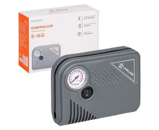 Компрессор выполнен в пластиковом корпусе светло-серого цвета с наличием манометра на верхней внешней части изделия. Производительность компрессора составляет 16 л/мин, что обеспечивается благодаря механизму с использованием плавающего шатуна и традиционными размерными показателями цилиндра. Для полноценного функционирования размер накачиваемых колес не должен превышать радиус R16. Комплектация: 1. Поршневой компрессор высокого давления с манометром; 2. Переходники-насадки - 3 шт.; 3. Сумка для хранения и переноски с логотипом AIRLINE; 4. Инструкция по применению; 5. Гарантийный талон; 6. Индивидуальная коробка.