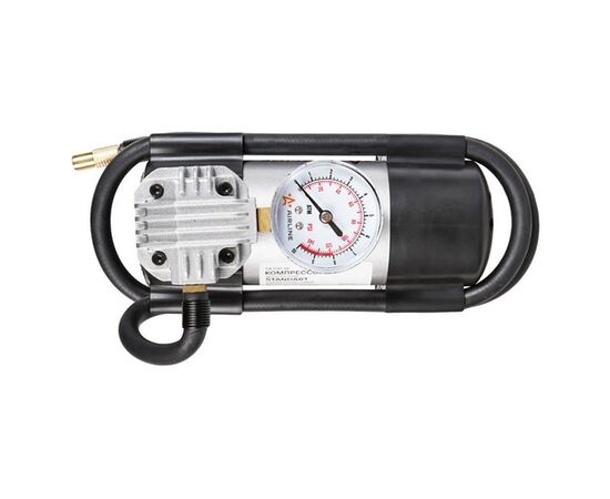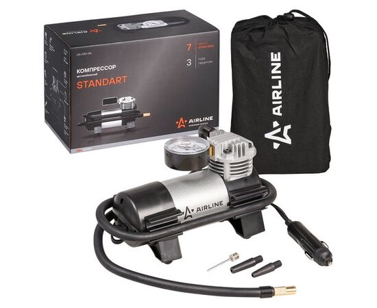 Компрессор STANDART представляет собой изделие компактного размера с металлическим корпусом с элементами из прочного пластика. К весомым преимуществам модели следует отнести наличие наконечника, который легко снимается при необходимости, наличие универсального патрона с накидной конструкций, а также наличие двух шкал на экране манометра. Устройство способно работать до 20-ти минут. Для удобного хранения укомплектован сумкой. Гарантия — 2 года. Комплектация: 1. Поршневой компрессор высокого давления; 2. Стандартные переходники-насадки - 3 шт.; 3. Паспорт изделия + Гарантийный талон; 4. Сумка для хранения и переноски с логотипом AIRLINE; 5. Упаковочная коробка + пенопластовый короб.