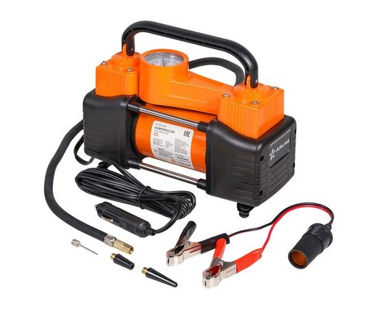 Самый мощный компрессор в линейке AIRLINE, работающий от прикуривателя, и вооруженный двумя поршнями!Механизм выполнен полностью из металла. Резиновый шланг, провода и все пластиковые элементы выполнены из высококачественного морозостойкого материала! Компрессор имеет яркий привлекательный дизайн! Совместно с производителем и благодаря новым разработкам удалось сделать более легкий и быстрый двигатель – количество оборотов увеличилось почти на 20%. Благодаря чему, даже снизив мощность компрессора, удалось достичь производительности 50 л/мин. Колесо R14 накачивает от 0 до 2 Атм. за 1,5 мин. Преимущества: - Металлический корпус и механизм - Насос поршневого типа - Встроенный манометр - Работа от сети автомобиля - Морозостойкие провода