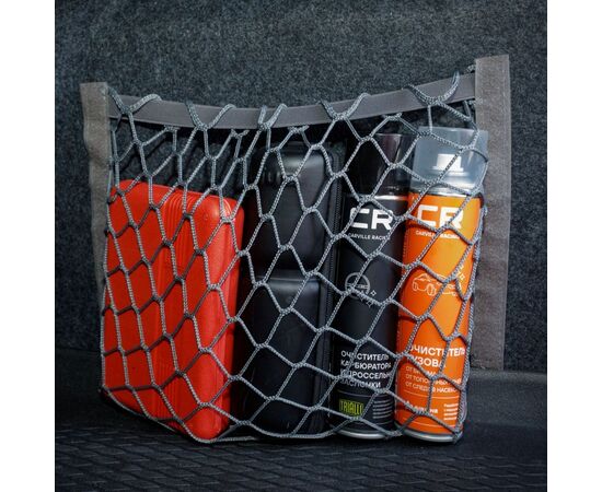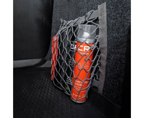 Изделие изготовлено специально для хранения и перевозки в салоне автомобиля мелких грузов. Компактная сетка 25х55 см имеет систему крепления в виде липучек, поэтому изделие идеально подойдет для автомобилей с текстильной обшивкой багажника.
