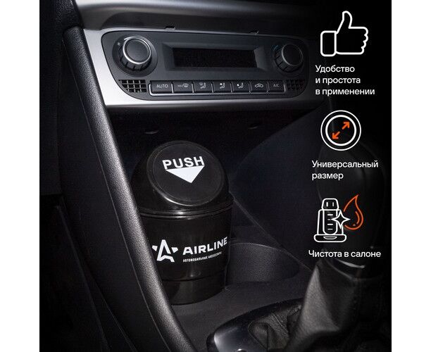 Ведерко для мусора в салон автомобиля. Благодаря своей форме возможно поставить в штатный подстаканник или в задний карман сиденья. Крышка имеет удобную шторку на пружинке, что позволяет выкинуть мусор, не открывая ее.