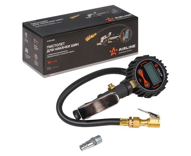Пистолет для накачки шин с цифровым манометром 14 АТМ обрезин. с клапаном сброса PRO (ATBU008)