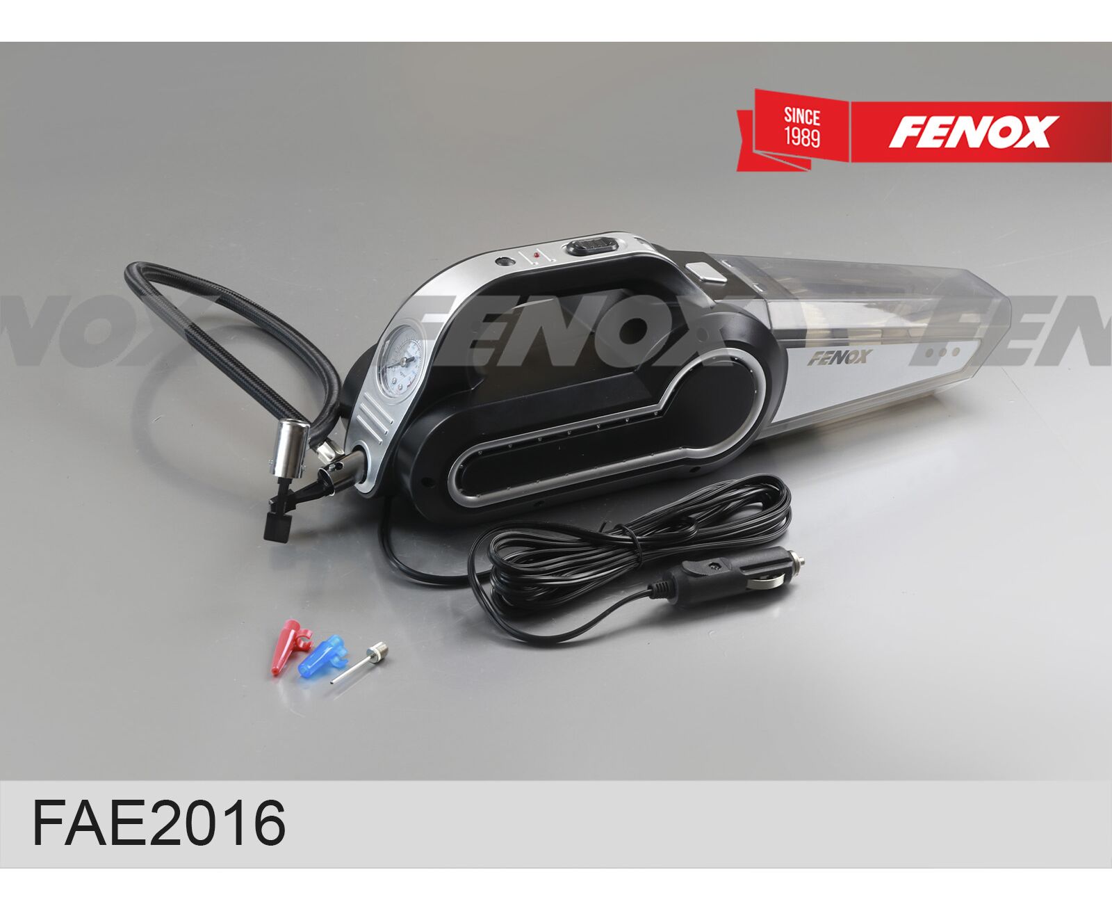 Пылесос-компрессор с фонарем и монометром ABS пластик, металл, PVC, 12В, 10А, 120Вт, 20л.мин, встрое