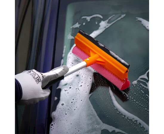 Компактная щетка с небольшой ручкой подойдет для удаления загрязнений со стекол легковых и среднегабаритных автомобилей. На рабочей поверхности щетки расположена поролоновая губка и прорезиненный водосгон. Ручка щетки также имеет резиновую вставку, которая облегчает период эксплуатации изделия.