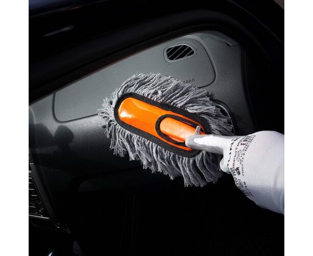 Компактная щетка позволит быстро и качественно очистить салон автомобиля от пыли и мелкого мусора. Длина ручки изделия составляет 35 см. Рабочая поверхность щетки оснащена длинным ворсом, который захватывает пыль и устраняет ее с убираемой поверхности. После эксплуатационного периода изделие легко моется и высыхает за короткий период времени благодаря особому строению ворса щетки.