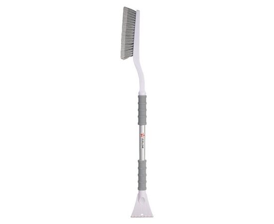 Компактная модель щетки длиной 92 см позволит быстро и без затруднений удалить загрязнения с поверхности автомобиля. Щетка оснащена мягкой щетиной с длинным ворсом, а также скребком для удаления льда. Рукоятка изготовлена из пластика, а также оснащена ребристыми вставками из морозоупорного поролона, который добавляет удобства при эксплуатации щетки. Корпус и щетина изделия выполнены в светло-сером цвете, а основание щетки и скребок – в белом.
