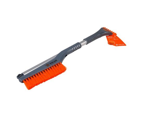 Щетка для очистки льда и снега представляет собой усовершенствованную модель, разработанную специально по технологии AIRLINE. Щетка оснащена плоской рукояткой, которая не позволяет изделию прокручиваться во время эксплуатации, что значительно повышает комфорт при использовании. Щетина щетки окрашена в ярко-оранжевый цвет, а рукоятка и основание – в серый.