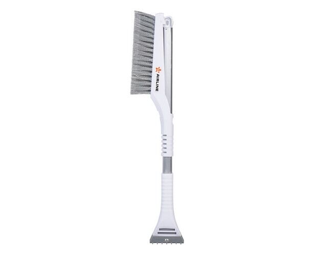 Данная модель щетки от AIRLINE оснащена рядом значительных преимуществ. Среди них – особое плоское строение рукоятки щетки, которое делает ее эксплуатацию более удобной. Также была усовершенствована форма и строение щетины изделия – она стала более мягкой, а значит не оставляет царапин и лишних следов на поверхности. Окрас щетины серый, а основание щетки изготовлено из белого пластика.