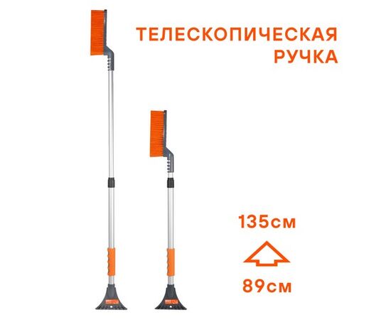 Щетка от снега и льда с телескоп. рукояткой и мягкой щетиной "Волна" + скребок (89-135см) (ABRN020)