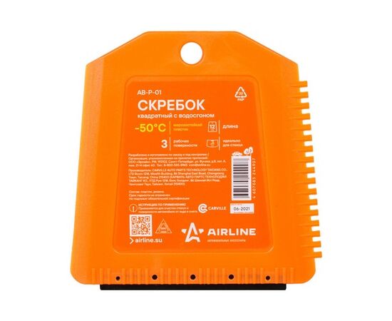 Скребок представляет собой изделие квадратной формы оранжевого цвета. На боковой и нижней части изделия расположены рабочие поверхности. Ребристая поверхность скребка позволяет удалить загрязнения или лед в сложно доступных местах, а водосгон устраняет разводы с корпуса автомобиля.