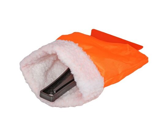 Изделие изготовлено в форме варежки универсального размера с установленным скребком на окончании варежки. Изделие изготовлено из материала, не подверженного перепадам температур и низким погодным условиям. Кромка варежки отделана мехом, который сохранит тепло внутри изделия и позволит провести уборочные работы даже при низких температурах. Компактный скребок удалит наледь и снег с машины, не оставляя царапин и разводов от уборки.