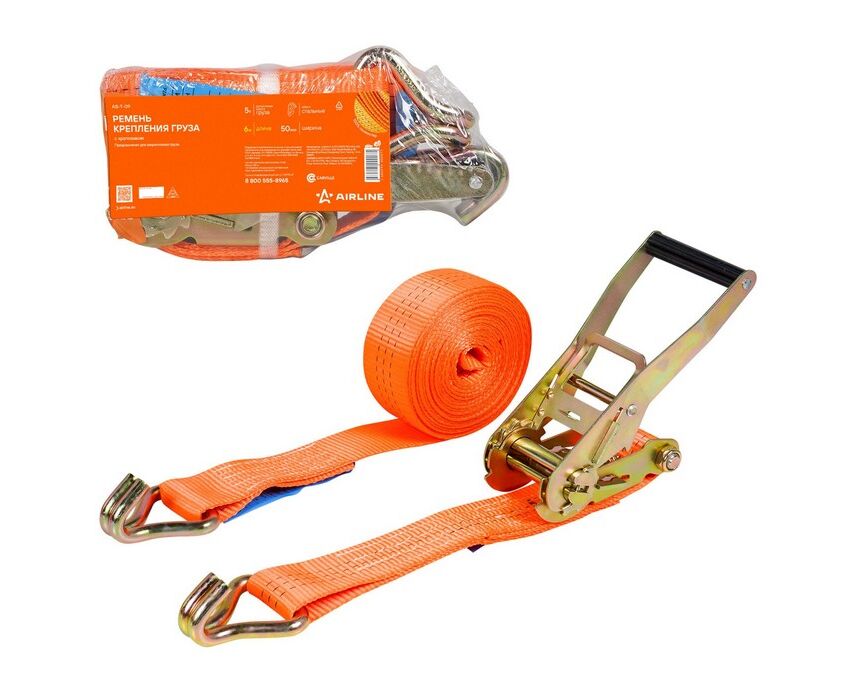 Решить экстренную проблему на дороге, связанную с перевозкой крупногабаритных грузов, поможет ремень крепления. Ремень от AIRLINE изготовлен из прочных полиэфирных нитей, а оранжевый цвет изделия делает его заметным на дороге. Механизмом крепления является стальной храповик. Габаритные характеристики данной модели составляют: ширина ленты – 50 мм, длина – 6 м, грузоподъемность – 5 т. Комплектация: 1. Ремень крепления груза с храповиком 5 т. 2. 6 м. в вакуумной целлофановой упаковке с этикеткой – 1 шт.