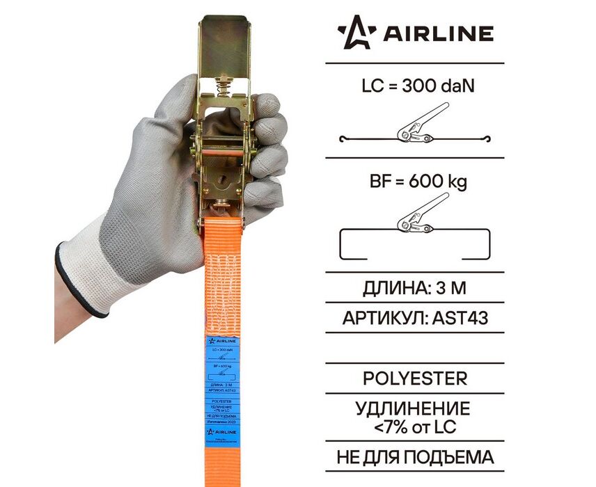 Ремень крепления груза с храповиком, кольцевой 600 кг, 3 м (AST43)