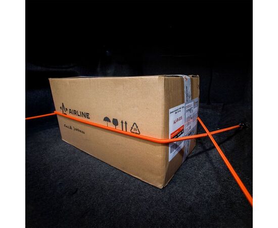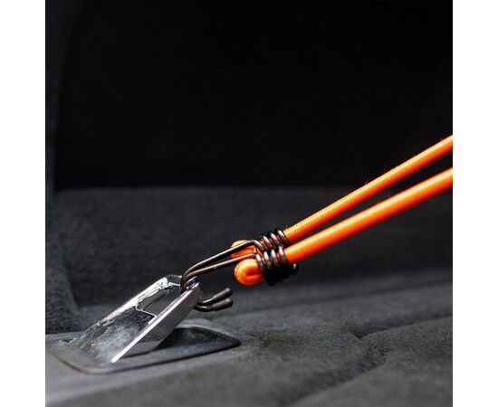 В состав набора, предназначенного для крепления и перевозки груза, входят 2 резинки длиной 60 см и диаметром 8 мм. Фиксация резинок производится с помощью металлических крючков. Длина резинок идеально подойдет для эксплуатации набора в салоне легковых автомобилей или для малогабаритной техники.