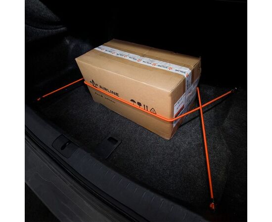 В набор системы крепления от AIRLINE входят 2 резинки длиной 80 см. Резинки устанавливаются в салоне автомобиля с помощью металлических крючков, которые крепятся к панели автомобиля, размещенной в багажном отделении. Таким образом, резинки создают систему крепления, которая прочно фиксирует груз в салоне авто и помогает обеспечить сохранность перевозимых вещей.
