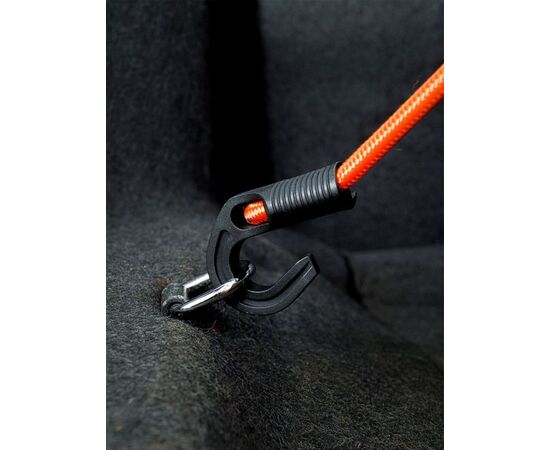 В комплекте резинок для крепления представлены 2 резинки длиной 80см. Крючки из пластика выполняют функцию фиксатора груза в салоне. Решение изготавливать крючки из пластика позволяет снизить стоимость изделия, не сыграв на качестве фиксации. Диаметр резинок 8 мм обеспечивает надежное препятствие для перемещения по салону перевозимых предметов.