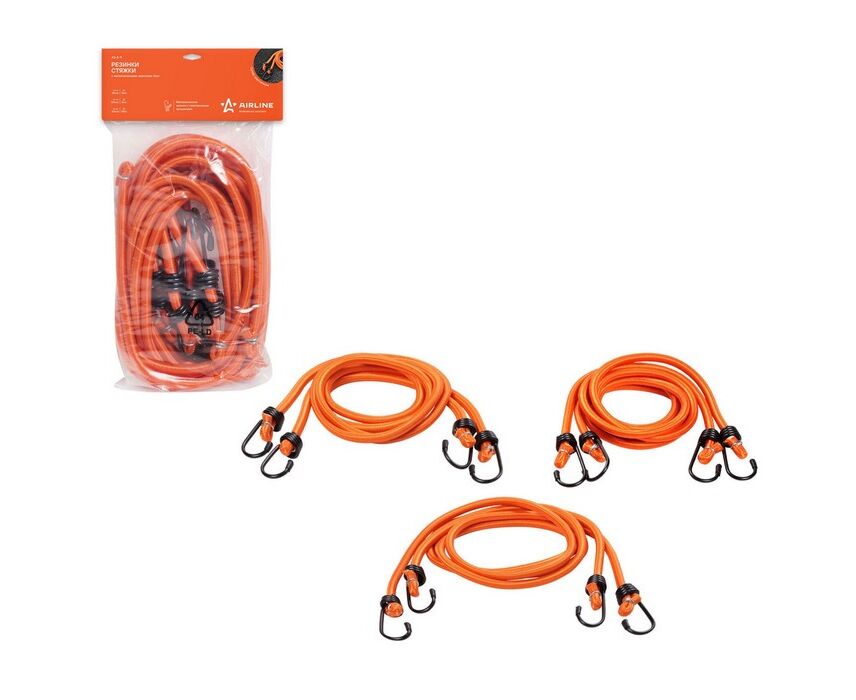 Резинки-стяжки набор 6 шт.: 2 шт.-80см, 2шт.-100см, 2шт-120см, D-8 мм, (метал. крючки) (AS-R-11)