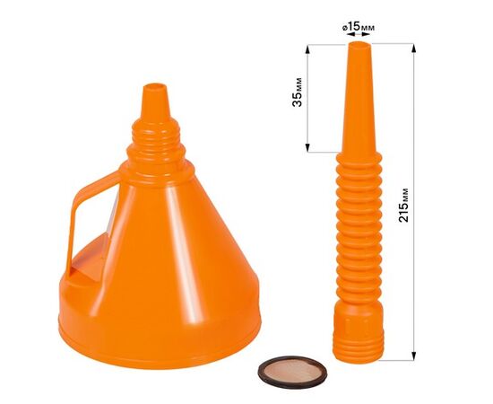 Воронка D-135 мм, гибкий носик 350 мм, латунная сетка, в пакете с навершием (APF-07)
