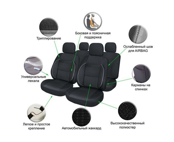 Чехлы для сидений универсальные "MONRO", 11 пред., повыш. комфорт, жаккард, черн. (ACS-UJ-01)