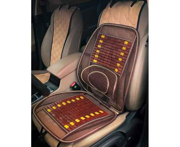 Накидка деревянная на перед. сиденье с поддержкой спины, массажная, цвет желт./коричн.(ADCS00