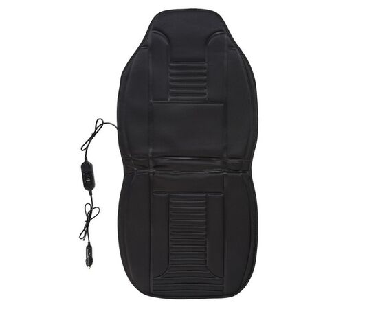 Накидка устанавливается на сиденье автомобиля и закрывает часть спинки, а также сидушку машинного кресла. Работает изделие от сети с напряжением 12В, которая имеется в большинстве легковых и среднегабаритных автомобилей. Накидка оснащает сидение подогревом с максимальной температурой +45C. Структура изделия имеет углеродный теплоэлемент.