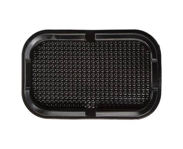 Компактный коврик с размерами 100х150х30мм с высокими бортиками играет роль подставки для мелкогабаритных предметов. Подставка фиксируется на плоской поверхности автомобильного салона с помощью липучки. Благодаря такому типу крепления изделие можно перемещать на панели в зависимости от необходимости любое количество раз.