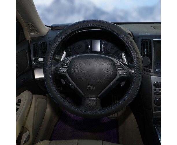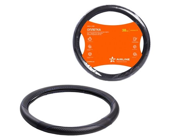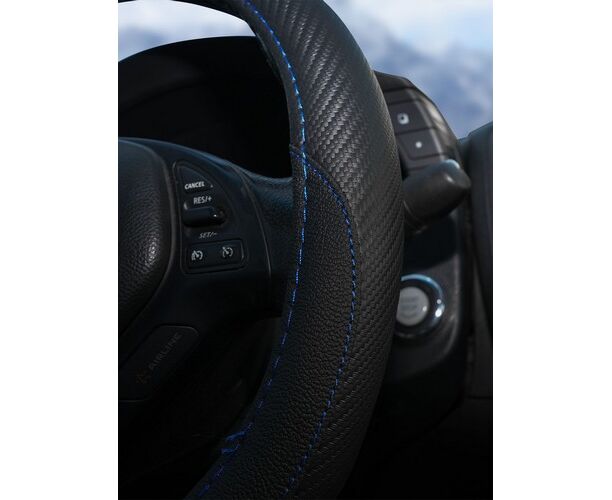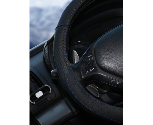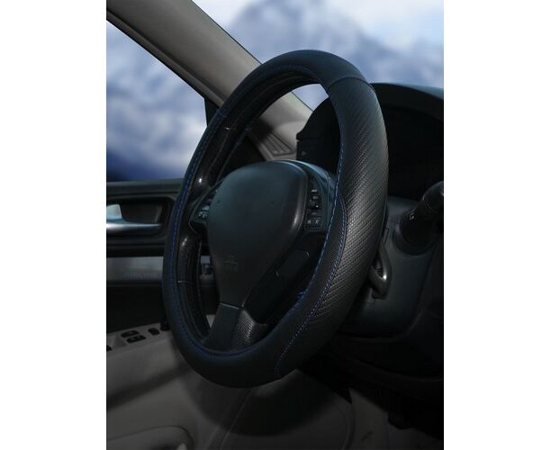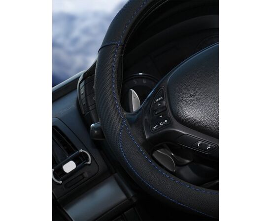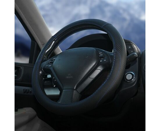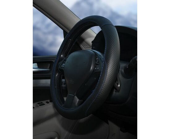 Оплетка на руль, искусст. кожа, текстура карбон, черная, син. прошивка, 38 см/М (AWS-LI-16M)