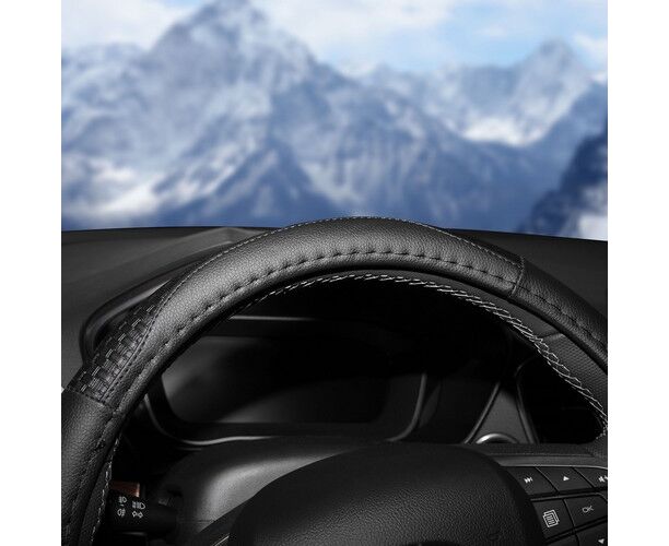 Оплетка на руль, искусственная кожа с тиснением, черная, 38 см / M (AWC-SL-03M)