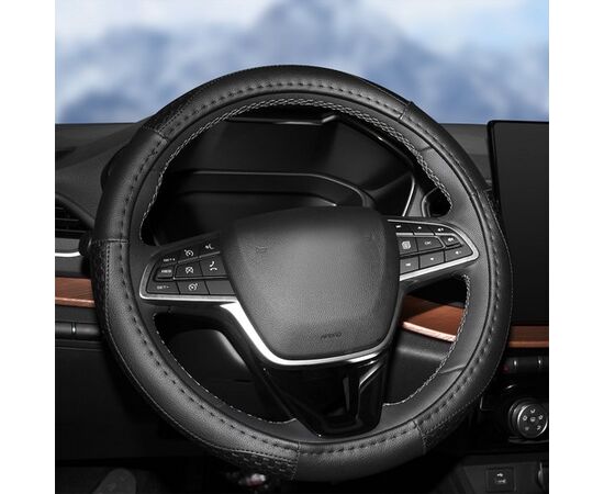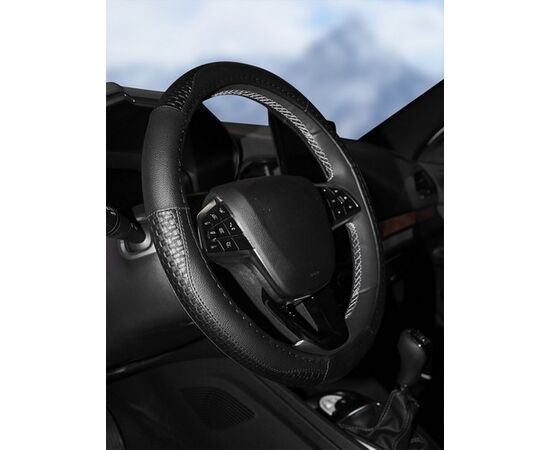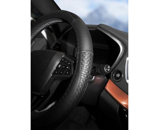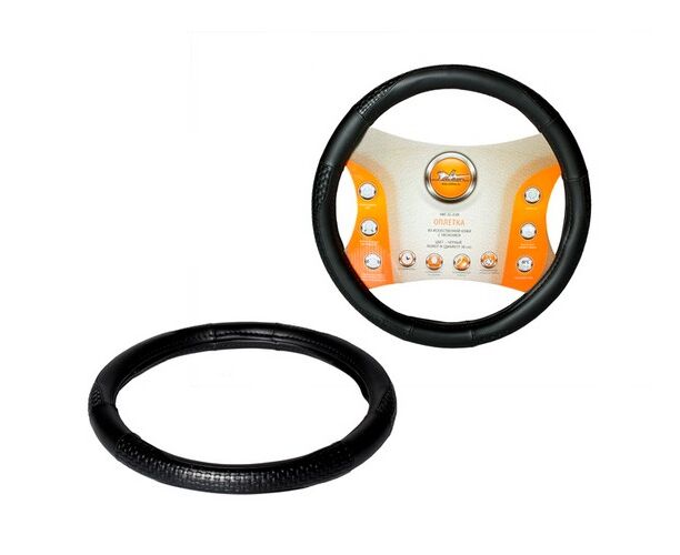 Оплетка на руль, искусственная кожа с тиснением,черная, 40 см / L (AWC-SL-03L)