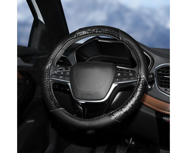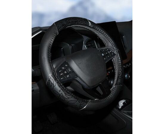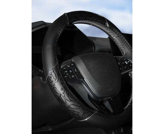 Оплетка на руль, искусственная кожа, женская модель, черная/принт, 38 см / M (AWC-CM-06M)