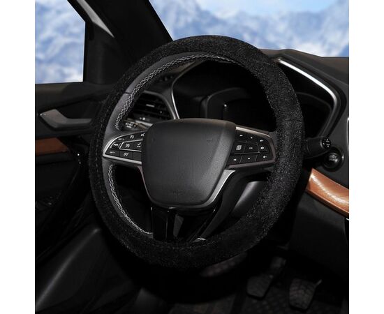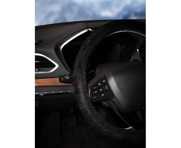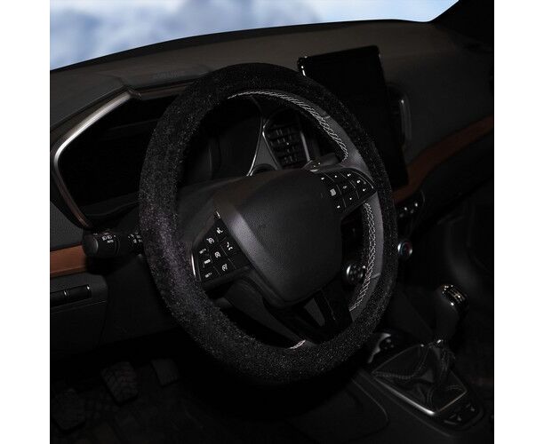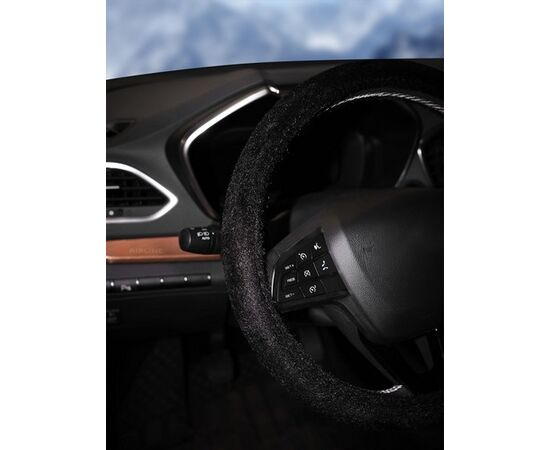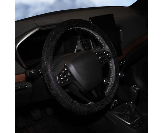 Оплетка на руль, искусственный мех, черная, 38 см / M (AWC-SF-09M)